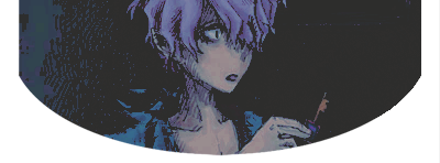details. with black roots, her hair covers her left eye. carries a lighter.